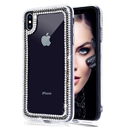 Jesiya for iPhone Xs Max Case 3D Glitter Sparkle Bling Case Luxury Shiny Crystal Rhinestone Diamond Sliver Chain Clear Protective Case Cover for iPhone Xs Max Silver