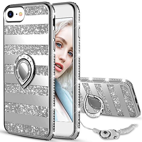 Maxdara Case for iPhone 8 iPhone 7 Glitter Case Mirror Striped Bling Shiny Diamond Rhinestone with Kickstand Ring Stand Cute Women Girls Case for iPhone 6 6s 7 8 4.7 inches (Sliver)