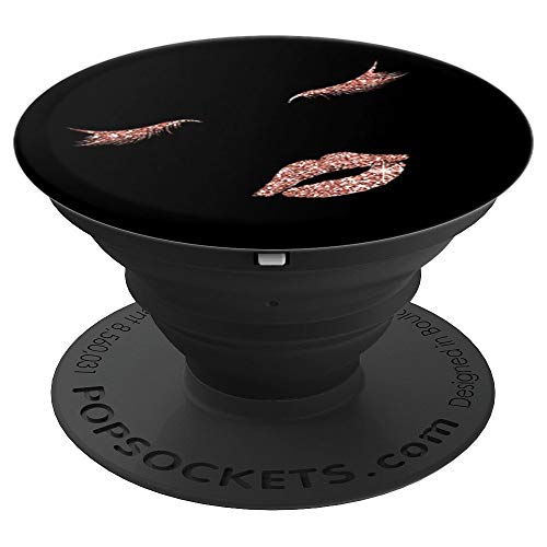 Rose Gold Lips PopSocket Lashes Lipstick Kiss Face on Black – PopSockets Grip and Stand for Phones and Tablets