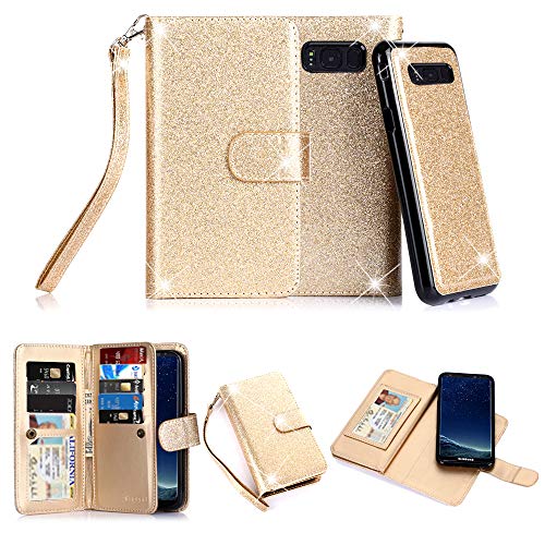 TabPow Galaxy S8 Plus Case, 10 Card Slot – [ID Slot] Wallet Folio PU Leather Case Cover With Detachable Magnetic Hard Case For Samsung Galaxy S8 Plus (SM-G9550) – Glitter Gold