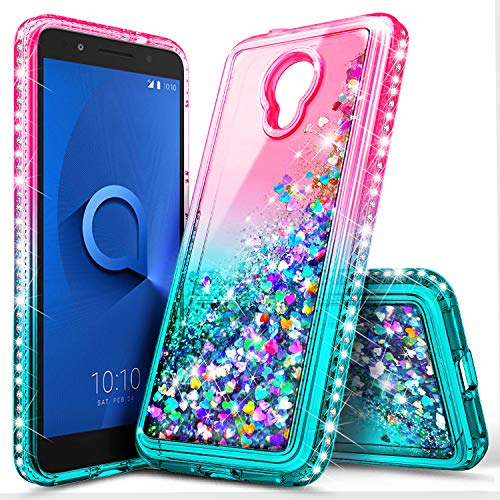 Alcatel TCL LX Case (A502DL), Alcatel Avalon V (Verizon Wireless)/1X Evolve/IdealXTRA, NageBee Glitter Liquid Waterfall Floating Sparkle Shiny Bling Diamond Girls Kids Women Cute Case -Pink/Aqua
