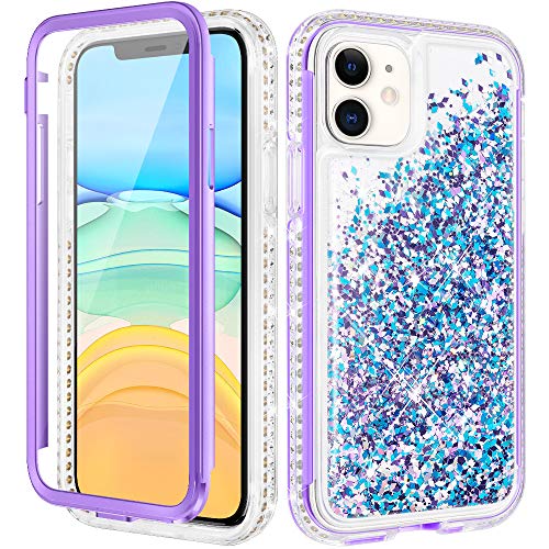 Caka Glitter Case for iPhone 11 Glitter Liquid Case Full Body with Screen Protector Floating Quicksand Shiny Diamond Case for Girls Women Girly Protective Case for iPhone 11 6.1 inches (Purple)