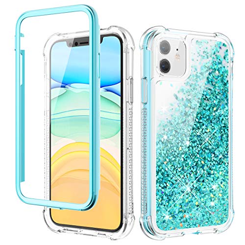 Caka iPhone 11 Case, iPhone 11 Glitter Clear Full Body Protection Case with Screen Protector Moving Shining Sparkly Liquid Quicksand Girls Girly Women Shockproof Rugged Case for iPhone 11 6.1 (Teal)