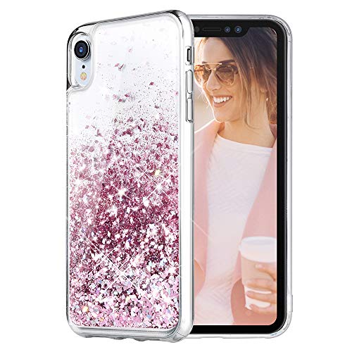 Caka iPhone XR Case, iPhone XR Glitter Case Liquid Series Sparkle Fashion Bling Luxury Flowing Liquid Floating Cute Glitter Soft TPU Clear Case for iPhone XR (Rose Gold)