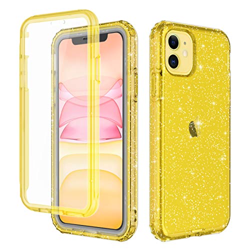 Casetego Compatible iPhone 11 Case,360 Full Body Dual Layer Slim Crystal Transparent Case with Built-in Screen Protector for Apple iPhone 11 6.1 inch,Glitter Yellow Crystal