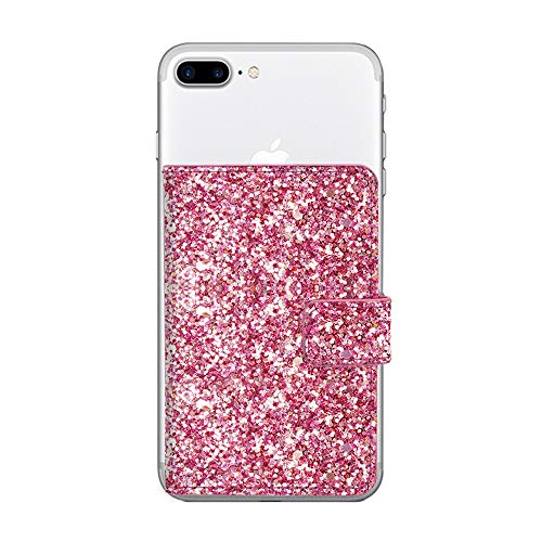 ClarksZone Flip Card Holder for Apple Phone Sequins Glitter Wallet Case [3M Adhesive] Stick On Slim Credit Card ID Card Slot for Apple iPhone X,iPhone 8,iPhone 8 Plus,iPhone 7,iPhone 6s (Pink Glitter)