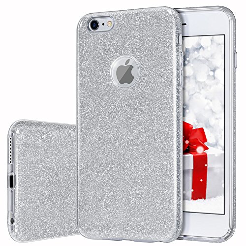 • 3-Layer Hybrid Structure: TPU Soft Shell (Outer) + Flash of Silver Film (Middle) + Transparent PC Frosted Shell (Inner), not only protect the sparkles, but also protect your iPhone from drops, shocks and scratches.