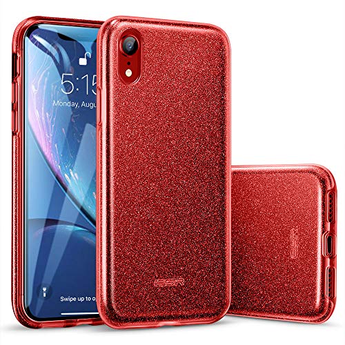 ESR Makeup Glitter Case Compatible for iPhone XR, Glitter Sparkle Bling Case [Three Layer] for Women [Supports Wireless Charging] for The iPhone XR 6.1″(Released in 2018), Red