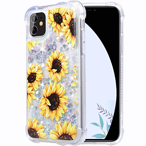 Flocute Glitter Case for iPhone 11 Glitter Floral Case Flower Bling Sparkle Floating Liquid Soft TPU Cushion Luxury Fashion Girly Women Cute Phone Case (Sunflower)