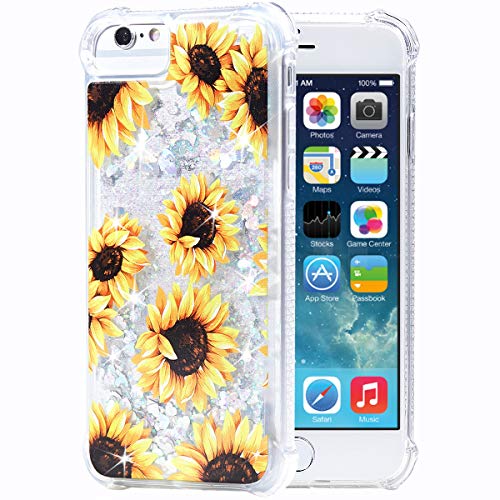Flocute iPhone 6 Case, iPhone 6s Glitter Floral Case Flower Bling Sparkle Floating Liquid Soft TPU Cushion Luxury Fashion Girls Women Cute Case for iPhone 6 6s (Sunflower)