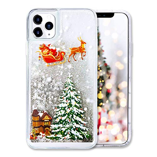 Fusicase for iPhone 11 Glitter Case Cute Merry Christmas Bling Liquid Floating Sparkle Shiny Luxury Protective Cover Rudolph Santa Claus Deer Tree Pattern Case for iPhone 11