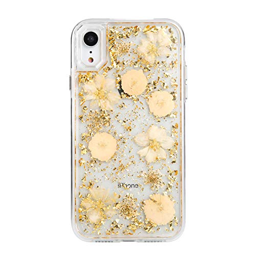 - 【Premium Design】: The flower cases for iPhone XR embed with dried pretty natural genuine petals and metallic elements, the iphone xr flower case will give your mobile phone a special look, the glitter case especially suits for teens girls women to express love.