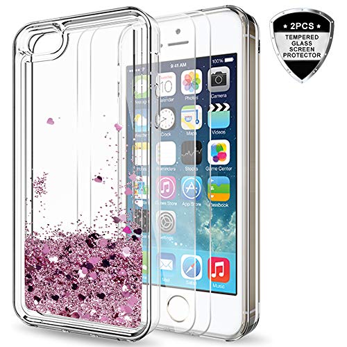iPhone 5S Case, iPhone SE/SE 2 Case for Girls Women, LeYi Cute Shiny Glitter Liquid Clear TPU Protective Case for iPhone 5 ZX Rose Gold