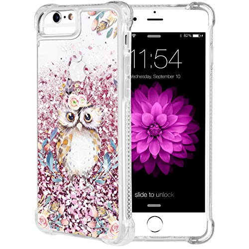 iPhone 6/6S/7/8 Case, Caka iPhone 6S Floral Glitter Case [Tempered Glass Screen Protector] Bling Flowing Floating Luxury Glitter Sparkle Soft TPU Liquid Case for iPhone 6/6S/7/8 (4.7″) – (Owl)