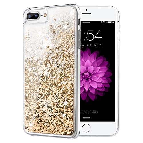 iPhone 7 Plus Case, Caka iPhone 7 Plus Glitter Case Flowing Luxury Bling Glitter Sparkle Liquid Floating Soft TPU Case for iPhone 7 Plus/8 Plus (5.5 inch) – (Gold)