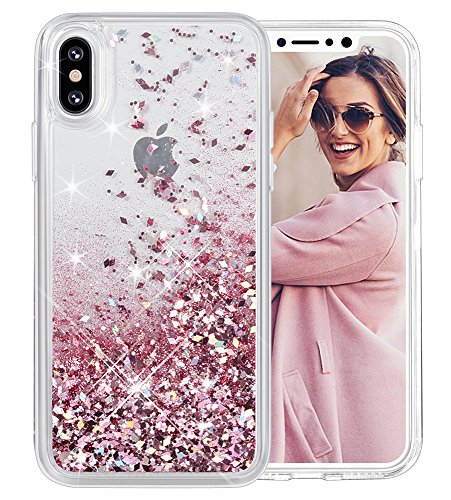 iPhone X Case, Caka iPhone Xs Glitter Case [Liquid Series] Girls Luxury Fashion Bling Flowing Liquid Floating Sparkle Glitter Cute Soft TPU Case for iPhone X/XS – (Rose Gold)