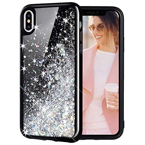 iPhone X Case, Caka iPhone Xs Glitter Case [Starry Night Series] Luxury Fashion Bling Flowing Liquid Floating Sparkle Glitter Girly Cute TPU Bumper Case for iPhone X/XS – (Black Silver)