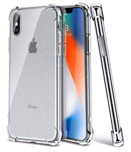 iPhone X Case, DAUPIN Clear iPhone X Case Gradient Glitter Bling Slim Thin Cute Anti Scratch TPU Bumper Phone Case Shockproof Protective Cover for Women Girls Compatible iPhone X (Clear)