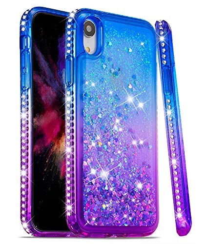 iPhone XR Case,iPhone XR Glitter Case for Women Girls,SunStory Moving Shiny Quicksand Glitter and Double Protection with PC Layer and TPU Bumper Case for Apple iPhone XR(6.1″) (Blue-Purple)