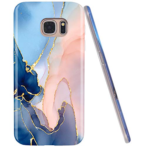 JAHOLAN Galaxy S7 Case Gold Glitter Sparkle Purple Marble Design Slim Flexible Bumper Glossy TPU Soft Rubber Silicone Cover Phone Case for Samsung Galaxy S7