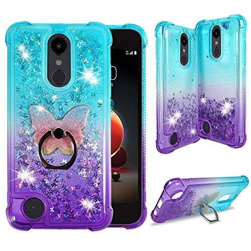 LG Aristo 3 2 Plus Case, LG Tribute Empire Dynasty, LG Fortune 3 2, LG Rebel 4 3 LTE, LG Zone 4, Phoenix 4 [Liquid Glitter Bling] Clear Case w/Cute Phone Ring by Zase (Gradient Aqua Purple)