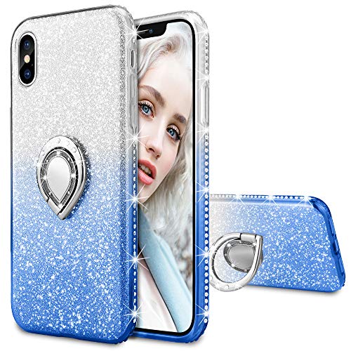 - [360 Degree Rotating Ring Kickstand Design] iPhone X/Xs glitter case with shinning 360 degree rotating ring grip new design allow hands-free comfort use of your phone from any angles, it is convenient to carry and have fun .