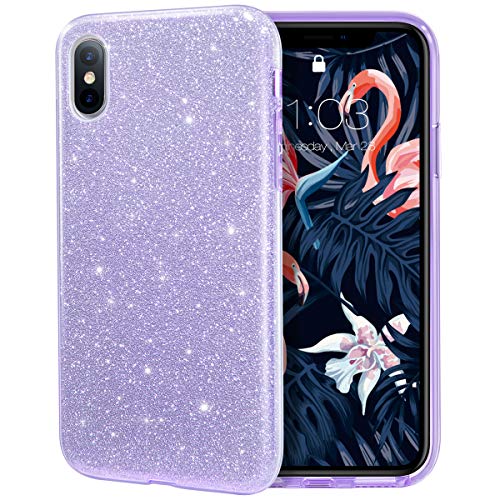 MILPROX Glitter case for iPhone Xs iPhone X 5.8″, Shiny Sparkle Bling, 3 Layer Hybrid Protective Soft Case – (Purple)