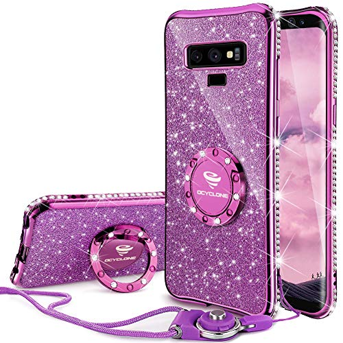 OCYCLONE Galaxy Note 9 Case, Glitter Cute Phone Case for Women Girls with Kickstand, Bling Diamond Rhinestone Bumper with Ring Stand Compatible with Galaxy Note 9 Case for Girl Women – Purple