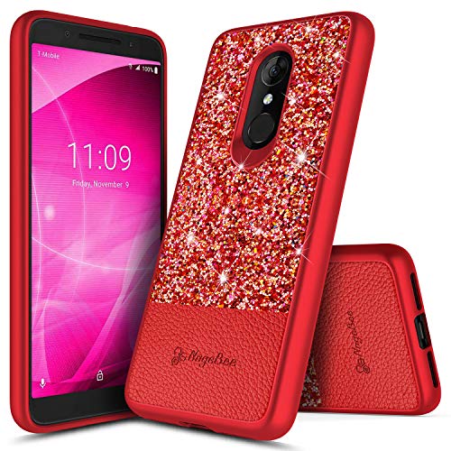 Revvl 2 Case (T-Mobile), NageBee Glitter Crystal Sparkle Shiny Bling Ultra Slim Thin Soft Leather Cute Case for T-Mobile Alcatel Revvl 2 (2018) -Red