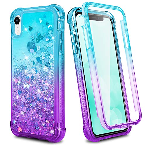 Ruky iPhone XR Case, iPhone XR Glitter Case Full Body Rugged Liquid Cover with Built-in Screen Protector Shockproof Protective Girls Women Phone Case for iPhone XR Cases (Teal Purple)