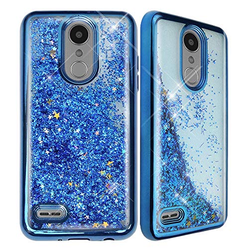 TJS Case for LG Aristo 2/Aristo 2 Plus/Aristo 3/Aristo 3 Plus/Tribute Dynasty/Tribute Empire/Fortune 2/Rebel 3 LTE [Full Coverage Tempered Glass Screen Protector] Glitter Chrome Phone Cover (Blue)