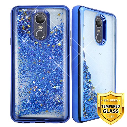 TJS LG Stylo 4 2018/LG Stylo 4 Plus/LG Q Stylus/LG Q Stylus Plus/LG Q Stylus Alpha Phone Case, [Full Coverage Tempered Glass Screen Protector] Glitter Liquid Chrome Bump Shockproof Motion (Blue)