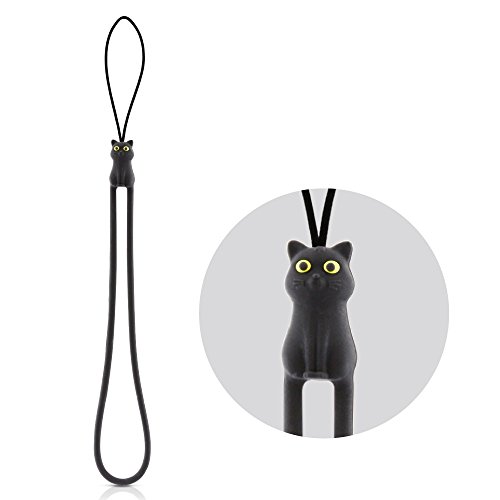 Cute Animal Phone Charm Hand Wrist Strap Lanyard, Silicone Elastic Wristlet String for Cell Phone Case ID Name Badge Holder Keychain Keys Cartoon Kids Girls Women Design – Black Cat