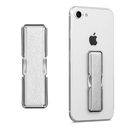 grip your device without fear of dropping it!EASY TO USEUse your phone much more comfortably and securely, simply stick to the back of your device and enjoy!kwmobile – Made for Smart ElectronicsOur large catalogue features tons of mobile accessories and cool gadgets. Buy today!SPECIFICATIONSColour: SilverMaterials: faux leather, plastic, metal bracket, rubber bandSize: 72 x 22 mmSelf-adhesiveSCOPE OF DELIVERY1x kwmobile finger holder with stand