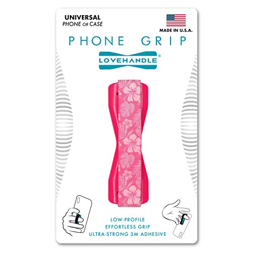 LOVEHANDLE Universal Grip for Most Smartphones, Mini Tablets and Cases – Pink Aloha Design Colored Elastic Strap with Pink Base