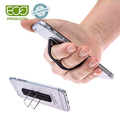 Phone Stand-Phone Grip-Phone Strap-Finger Grip Phone -Screen Protector for iPhone Android Tablets and Mobile Devices (Black)