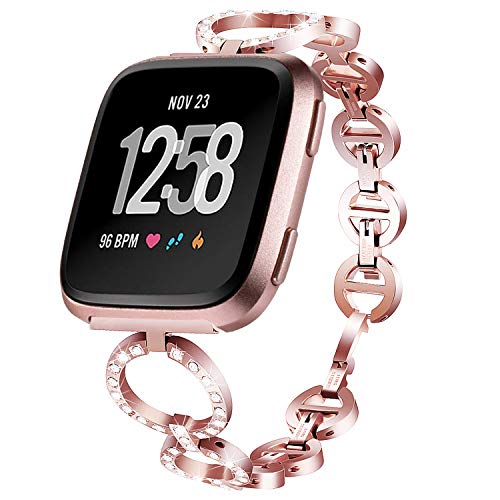 - Aiiko Compatible FITBIT VERSA BANDS – Premium O-Link fashion jewelry design stainless steel metal bands with crystal rhinestone diamond for Fitbit Versa Smart Watch. Perfect polishing technology, makes surface more smooth and sparkling.