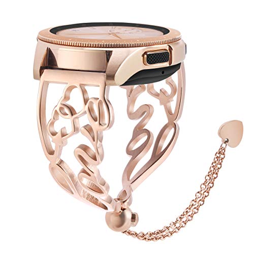 - ღGALAXY WATCH 42MM BANDS – Premium Floral Hollow Bangle design stainless steel metal bands with Galaxy Watch 42mm SM-R810/SM-R815 /Active 40mm SM-R500/Gear Sport/S2 Classic Smart Watch bands also fit for any other watches with 20mm frame such as Huawei Watch 2/Moto 360 2nd Gen 42mm/Garmin Vivoactive 3/Ticwatch 2 et (Please NOTE the Samsung Galaxy Watch is not included)