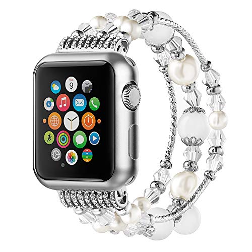 Anjoo Fashion Handmade Jewelry Elastic Stretch Apple Watch Series 3/ 2/ 1 Bracelet Strap with Case for Women Girls