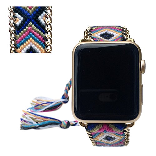 Fashion 38MM Apple Watch replacement band. These iWatch bands are made of colorful ropes and metal chain woven by hand. Fun and fashionable these friendship style bracelets are sure to attract attention. This style perfect matching for girls and women, also makes a wonderful gift. Adjustable band by knot to fit your tiny or large wrist well,the watch band is fit size from 5.5″ to 7.8″.