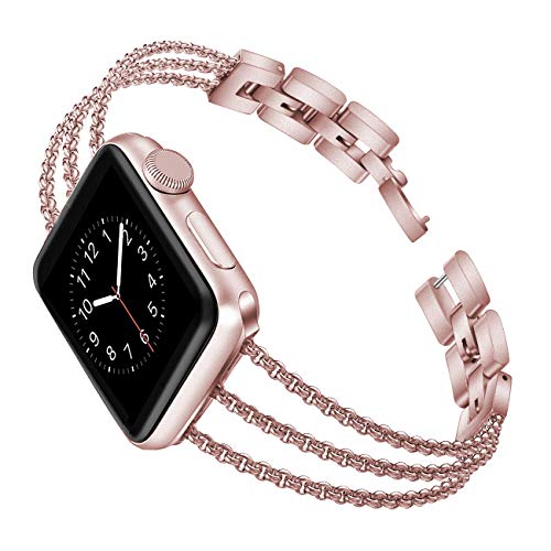 Biaoge Metal Band Compatible for Apple Watch Band Series 4 40mm 44mm/ iWatch Series 3 2 1 38mm 42mm, Adjustable Stainless Steel Replacement Wristband Strap Cuff Bangle Bracelet Access(Rose Pink, 38mm)