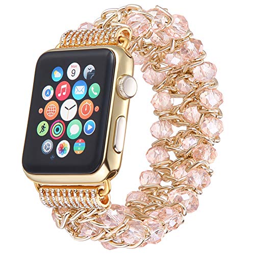 - 🤜Made of high quality alloy and artificial crystal beads, durable elastic rope,making your iwatch look luxury and elegant.Durable elastic rope makes you feel comfortable.