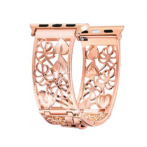 - Floral Smart Watch Strap 42mm 44mm, REAL Rose Gold Plated, Close to Apple Watch’s Rose Gold Color But NOT The Same, Hollow Replacement Band for Women and Girls, Beautiful and Graceful, A Feminine Smart Watch Wrist Band.(Watch NOT Include)