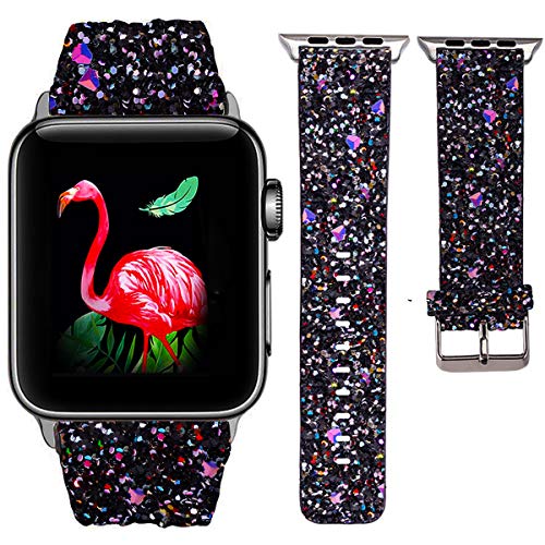 - 💝Bling Glitters: High quality shiny glitter iWatch strap sparkles beautifully and colorful especially under sunshine or light, it looks unique, fashion and attractive, perfect gift for women and girls iWatch Lovers.