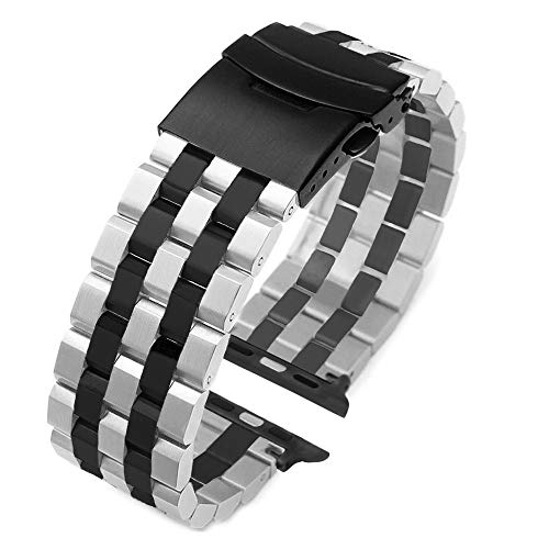 - Unique Design: Distinctive two-tone colors, black buckle and adapters. 5 rows design for your Apple Watch, flexible and comfortable to wear, make your apple watch brand a new fashion style. Coming with watch lugs adapters on both ends, locks into your Apple Watch interface precisely and securely