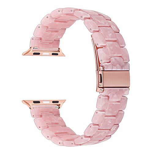 - HAND POLISHED&SUPERB MATERIALS: Each piece of resin is slowly polished by the experienced artificers. Combined with premium tortoise-tone Resin and 316L stainless steel fold-over clasp with double push button safety closure, it offers a new bracelet look to your Apple watch. Lighter than stainless steel metal band. Extreme Lightness makes it very comfortable to wear, and besides skin-friendly.