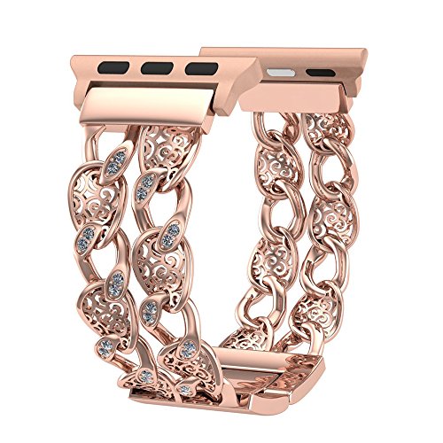 - Upgraded Cowboy Chain Apple Watch Band, REAL Rose Gold Plated, Close to Apple Watch’s Rose Gold Color, But Not The Same. Luxurious Baroque Cutout With Hand Jointed CZ Rhinestone Mesh Chain iWatch Wrist Band, Daily Fashionable Dress Up Bracelet.