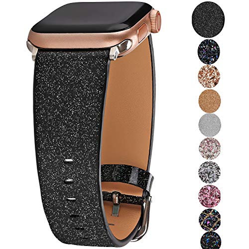 Glittery Watch strap: This Glistening Black watch glitter band adopt smooth glitter material which makes your watch looks fashion cute and elegant,bling bling look, makes your watch modern,sparkle and different from others.And no scratch, no falling.