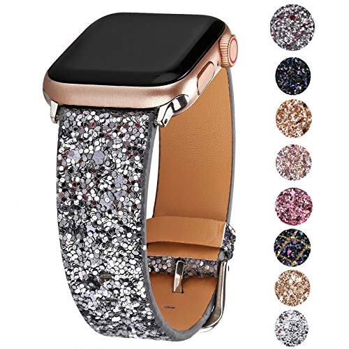 Glittery Watch strap: This Grey watch glitter band’s outer layer is crafted in 3D shiny glitter PU which makes your watch looks fashion cute and elegant,bling bling look, makes your watch modern,sparkle and different from others’.The inner layer is made of smooth genuine leather,soft and comfortable to wear.The glitter is not easy to fall off for normal usage.