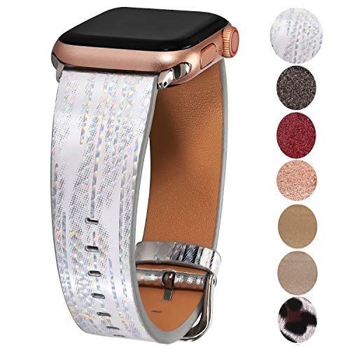 - Glittery Watch strap: This Rose gold watch glitter band’s outer layer is crafted in 3D shiny glitter PU which makes your watch looks fashion cute and elegant,bling bling look, makes your watch modern,sparkle and different from others’.The inner layer is made of smooth genuine leather,soft and comfortable to wear.The glitter is not easy to fall off for normal usage.
